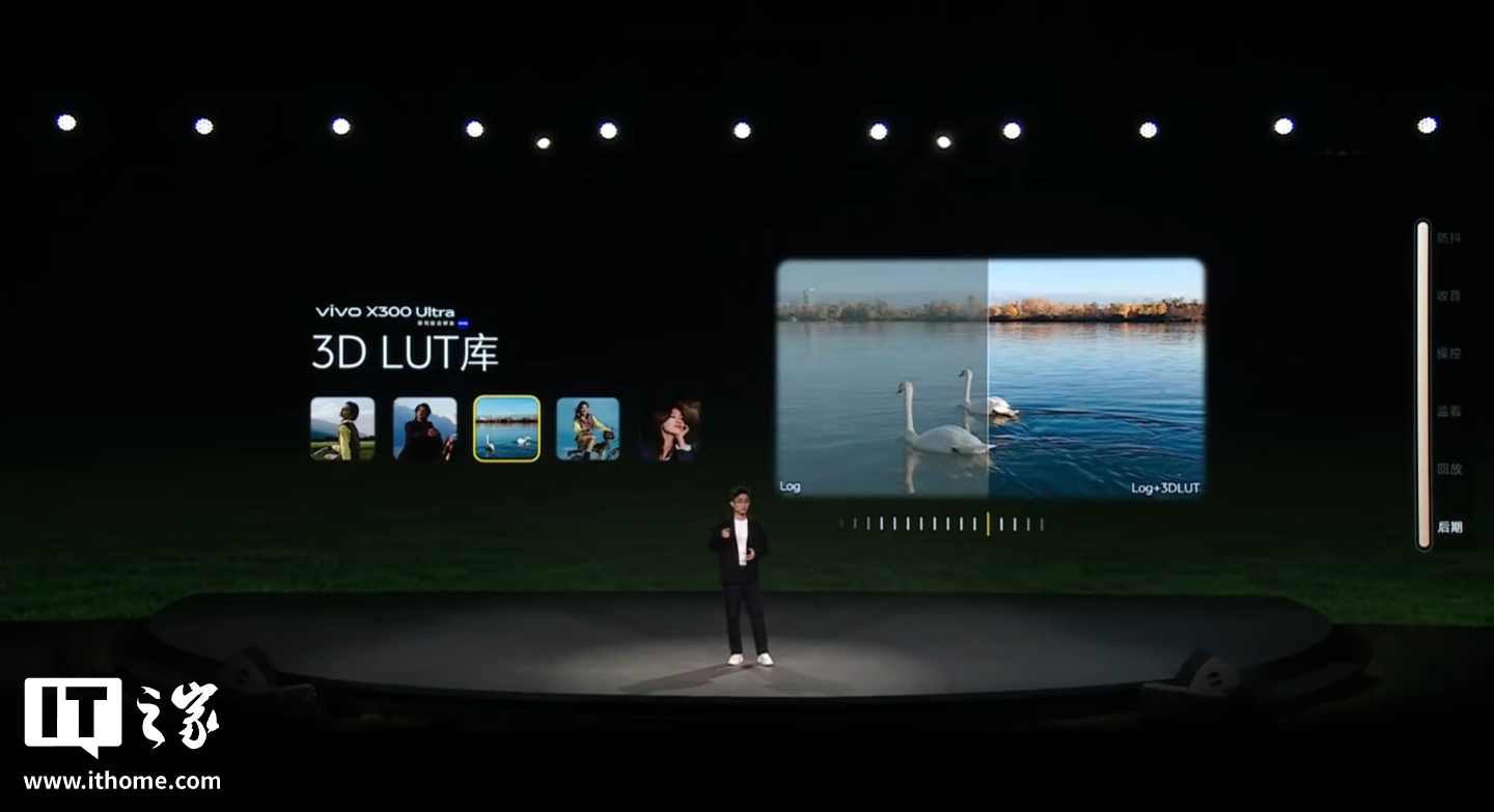 • 全链路专业视频工作流:支持全焦段 4K 120fps 10bit Log,422 采样、全焦段 OIS 光学视频防抖;配备四麦克风阵列,拍摄采集稳定清晰;2K 蔡司大师色彩屏,专业录像模式 Pro,开放自定义 3D LUT 导入监看;相册预览烧录 3D LUT,vivo 摄影 App 内置“3D LUT 库”,vivo Log 还适配 ACES 专业后期流程。