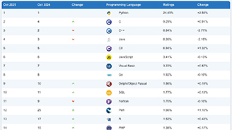 TIOBE 指数 2025 年 10 月排行榜公布:C、C++ 和 Java 互争榜二,Python 稳如泰山